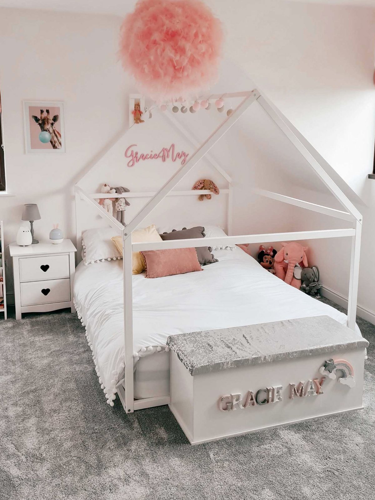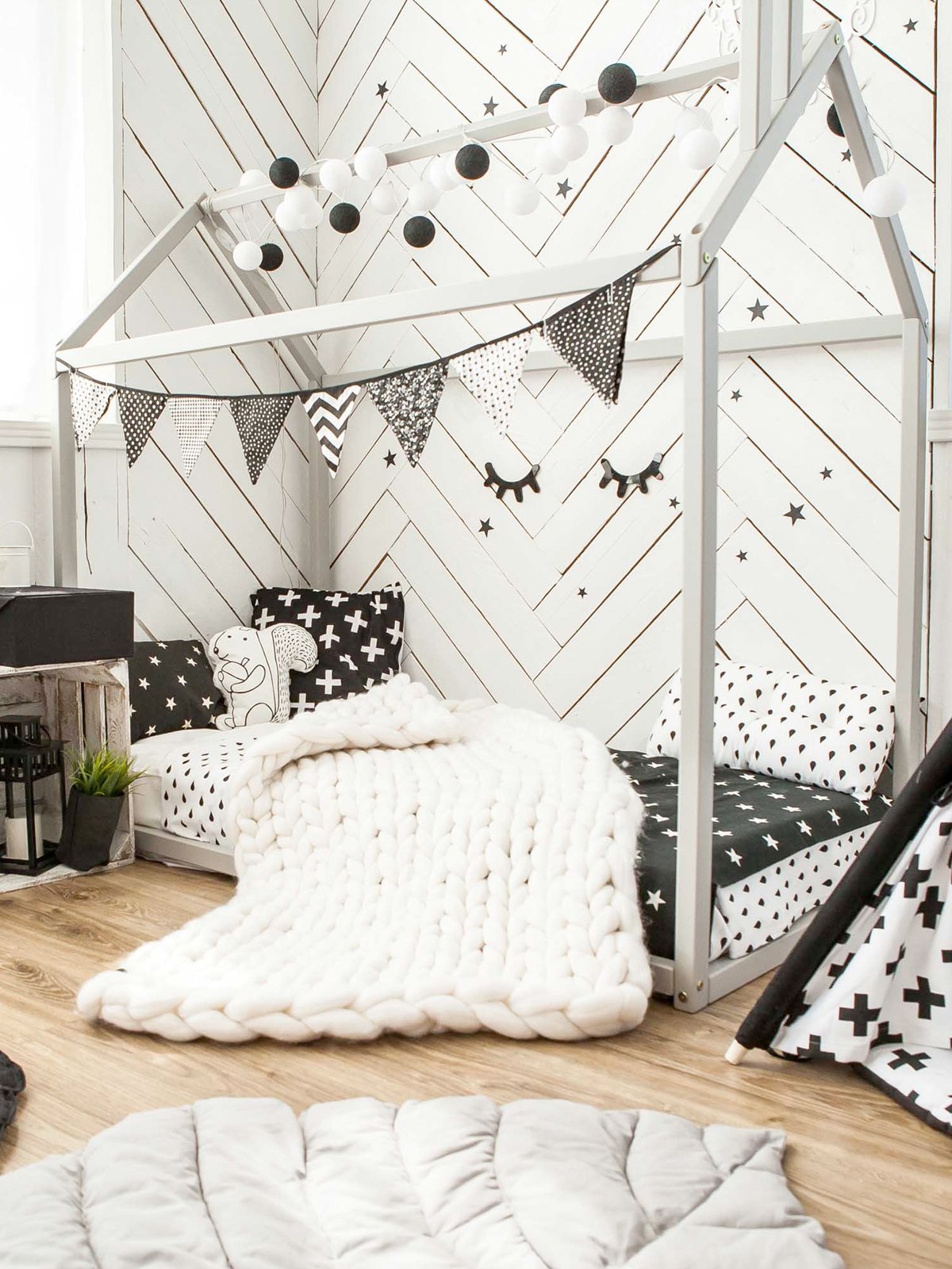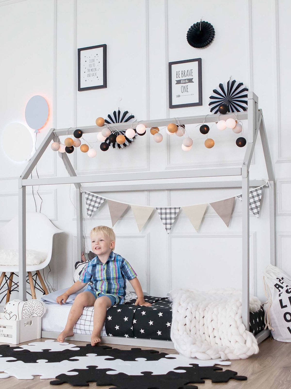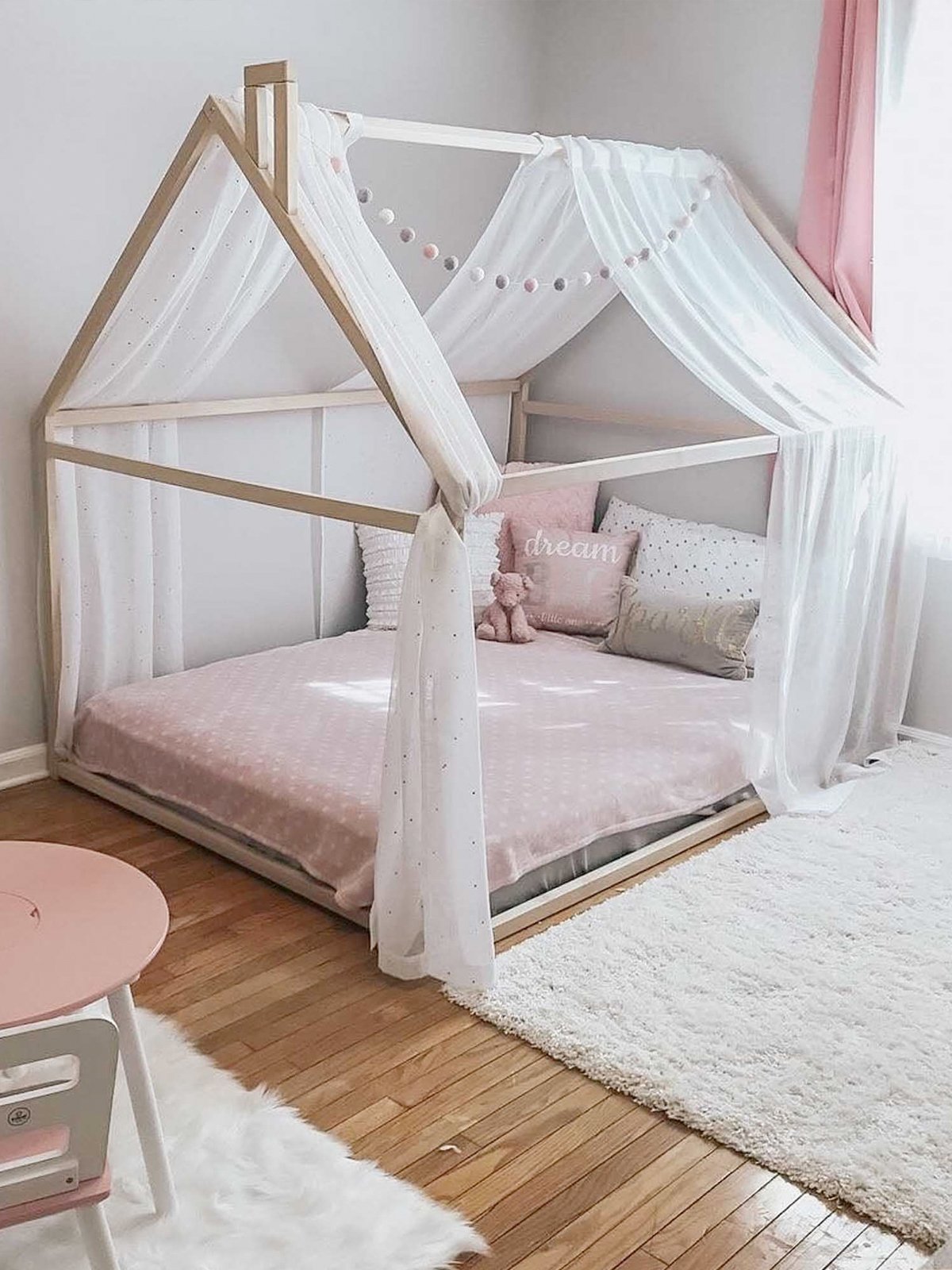 Het huisbed combineert stijl met veiligheid: de lage ligging maakt vallen vrijwel onmogelijk en het stevige houten frame zorgt voor een geruststellende, comfortabele slaap. Voeg wat lampjes, een klamboe of zachte kussens toe en er ontstaat een magisch slaapplekje waar jouw kind zich helemaal thuis voelt.