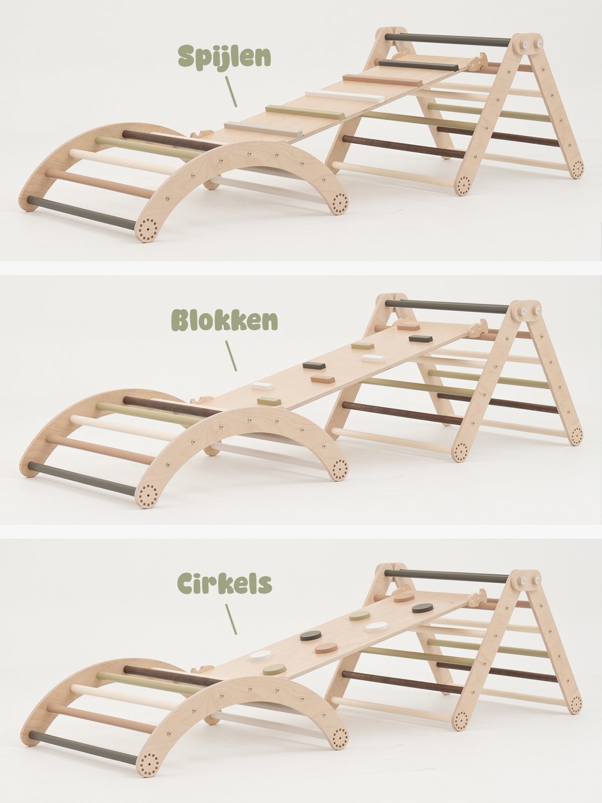 Klimset incl. spijlenhelling, Klimset incl. blokkenhelling, Klimset incl. cirkelhelling