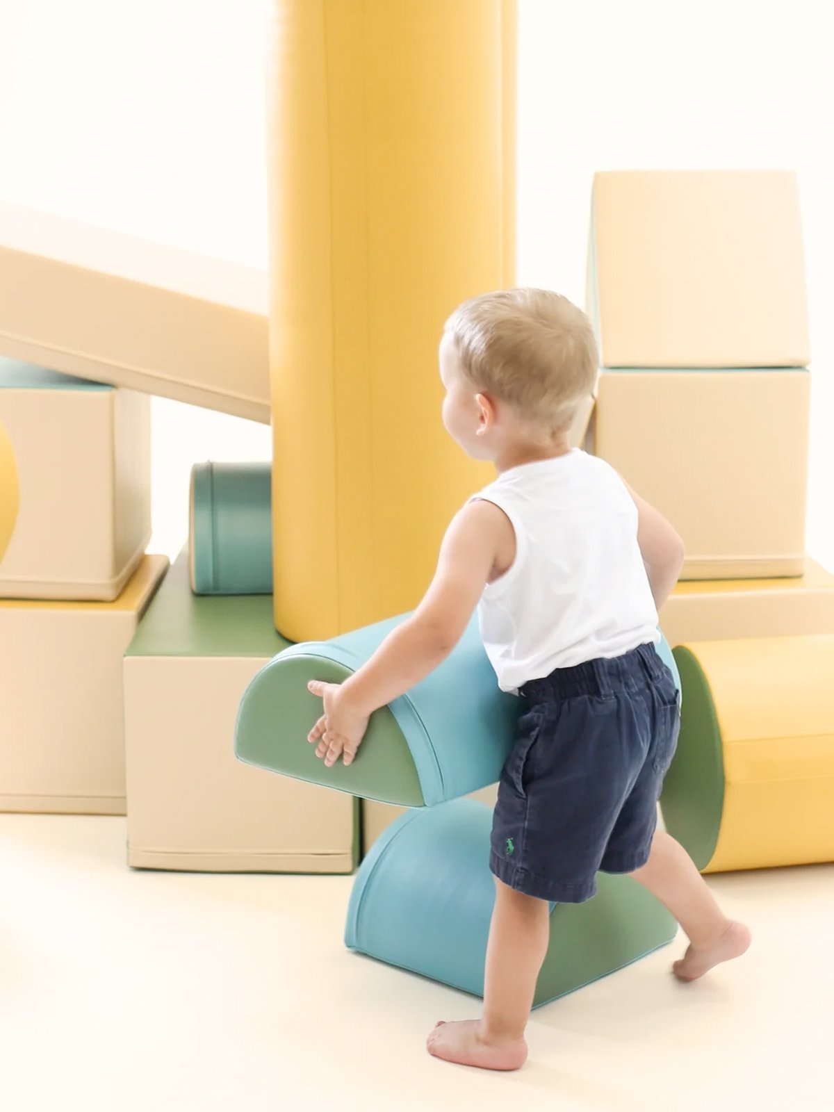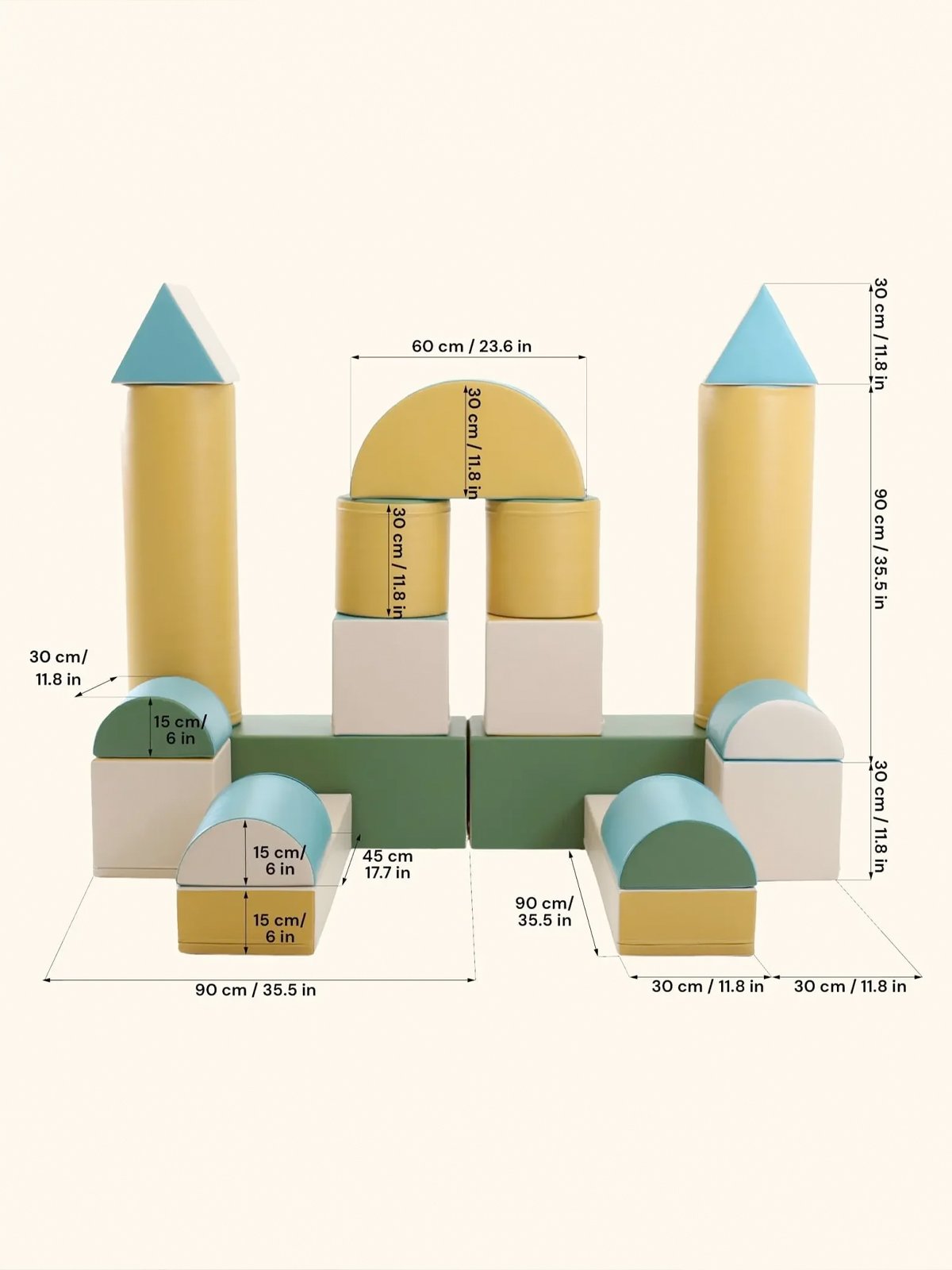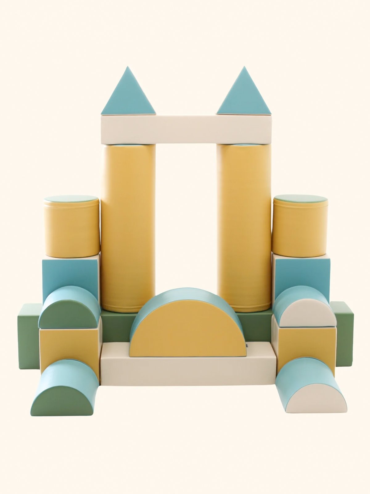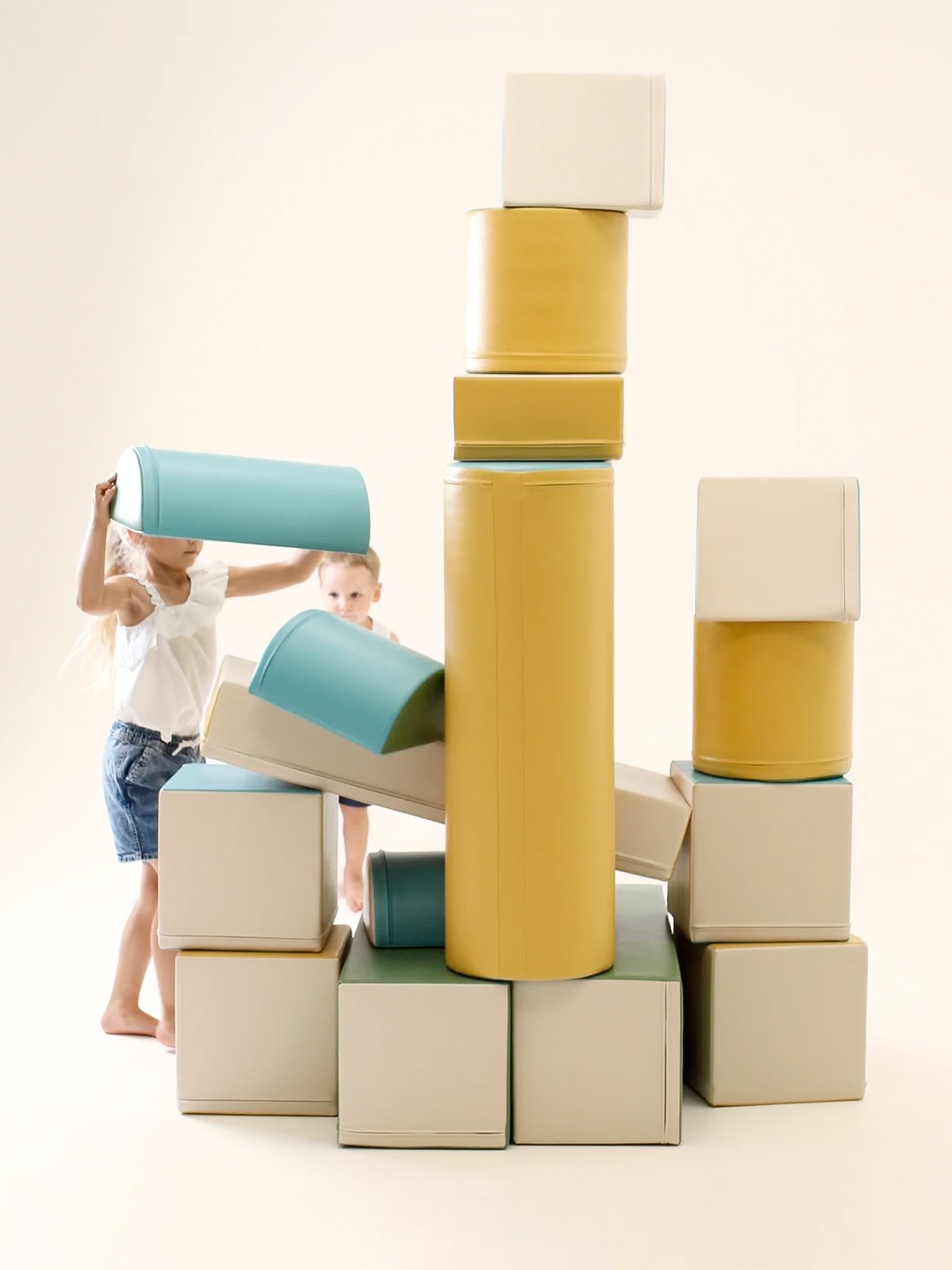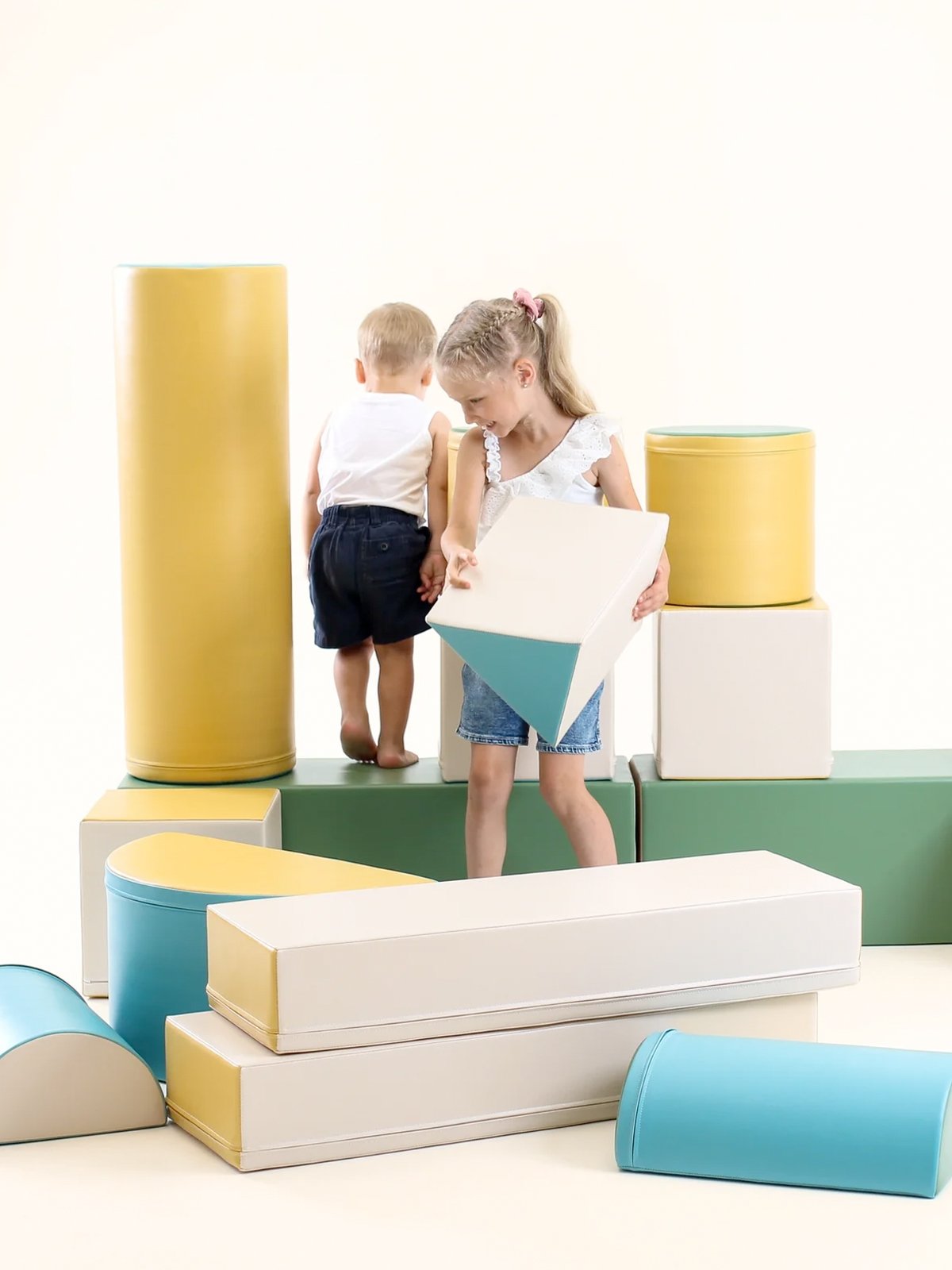 De soft play set zijn gemaakt van stevig, hoogwaardig 100% recyclebaar foam met een gesloten celstructuur – zacht én superlicht. Ze zijn bekleed met sterk, milieuvriendelijk kunstleer dat prettig aanvoelt en eenvoudig te reinigen is.