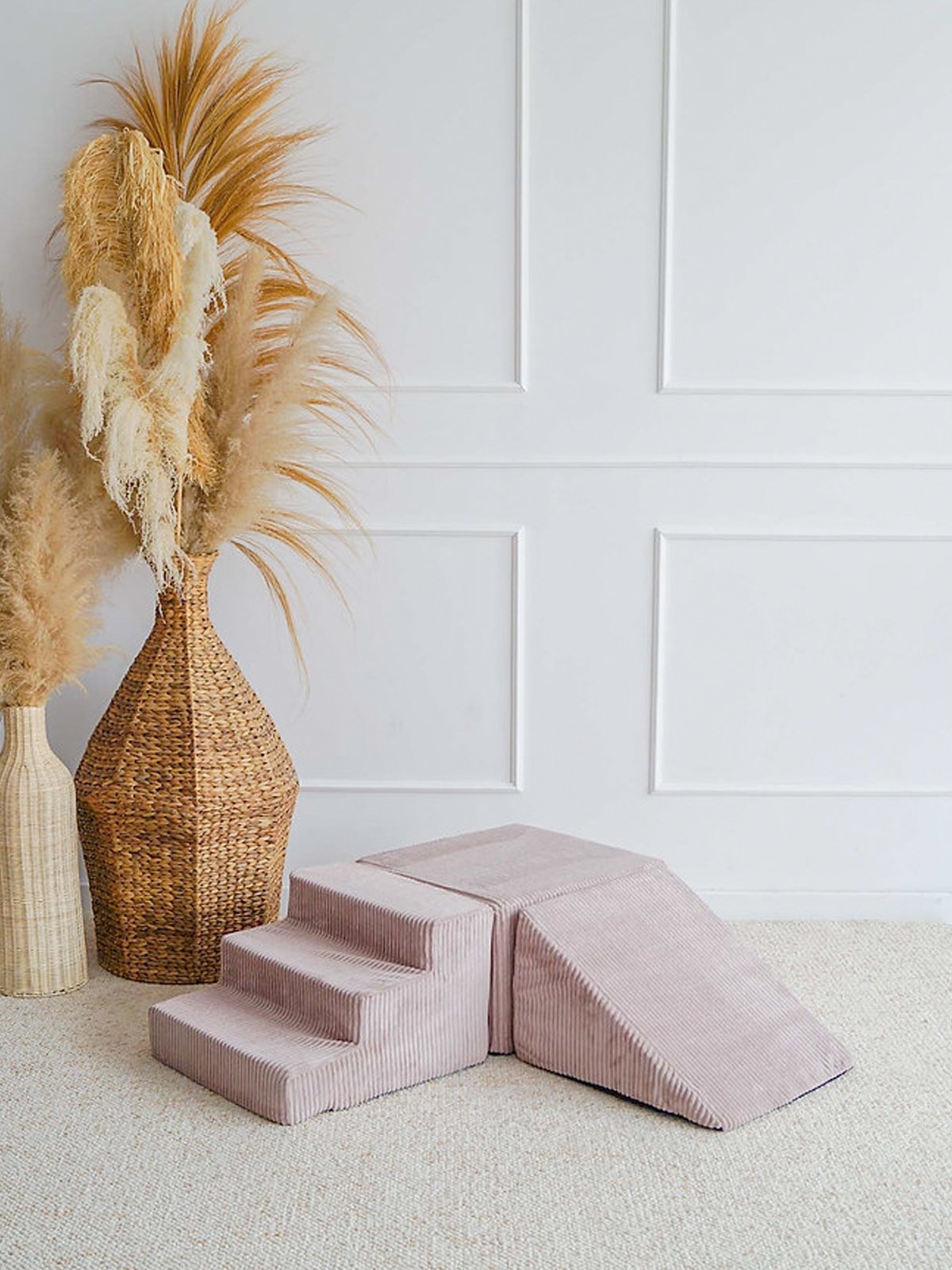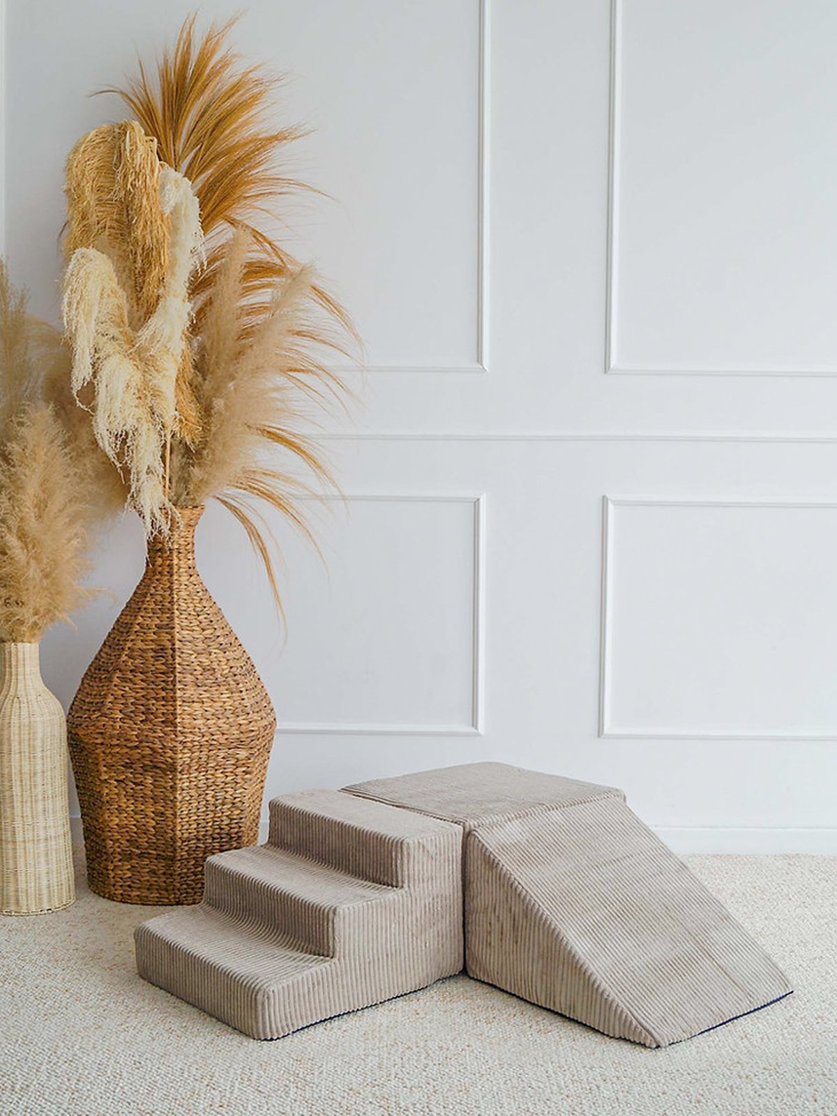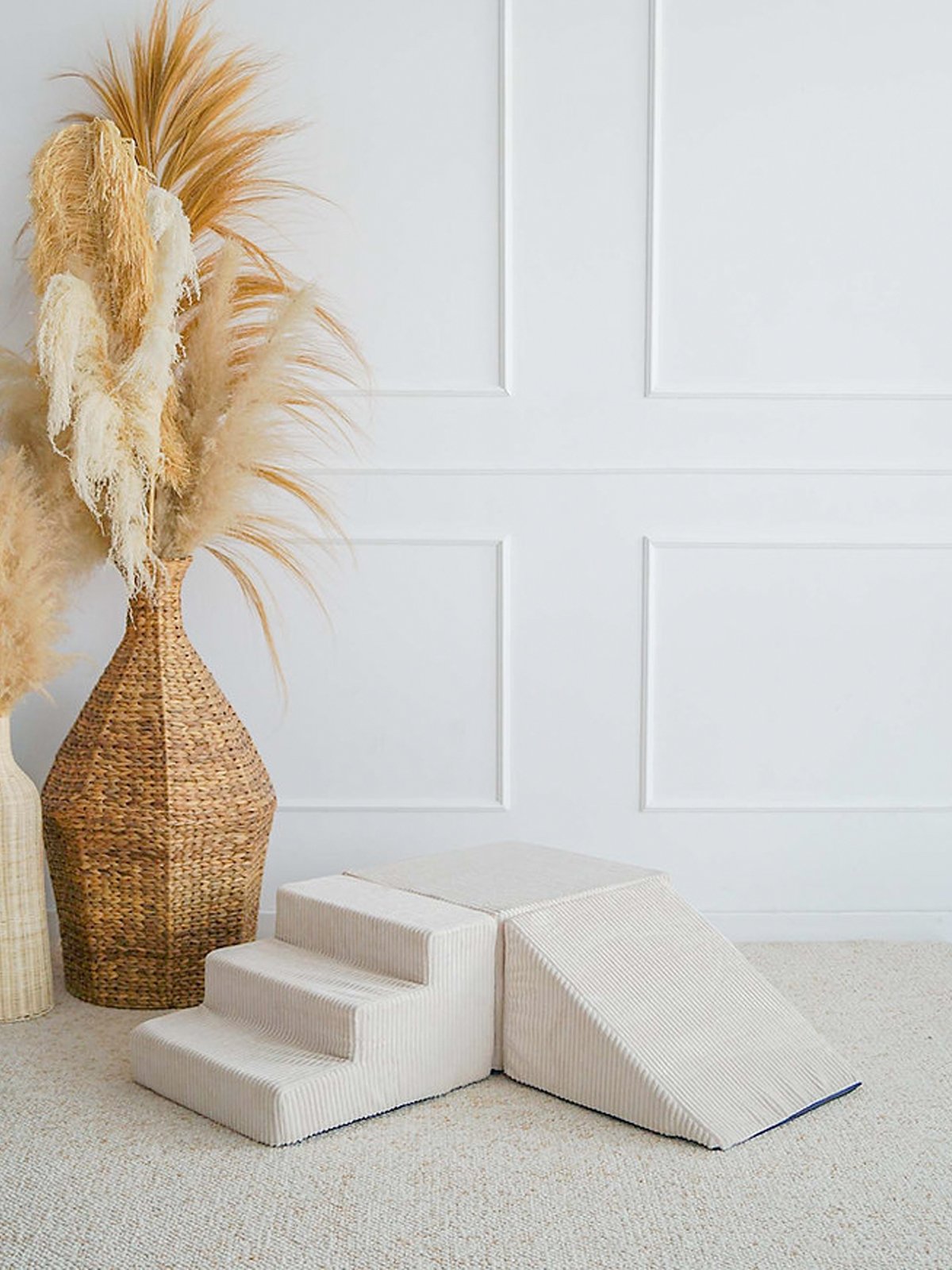 Ontdek eindeloos speelplezier met onze Drie Elementen Speelset. Een stijlvolle, zachte en veilige speelset die perfect past bij elk interieur. De drie losse onderdelen – een trapje, een hoge driehoek en een blok – nodigen uit tot klimmen, bouwen, glijden en fantaseren. Creëer steeds weer een nieuw parcours, fort of cosy hoekje waarin jouw kindje zich volop kan uitleven.