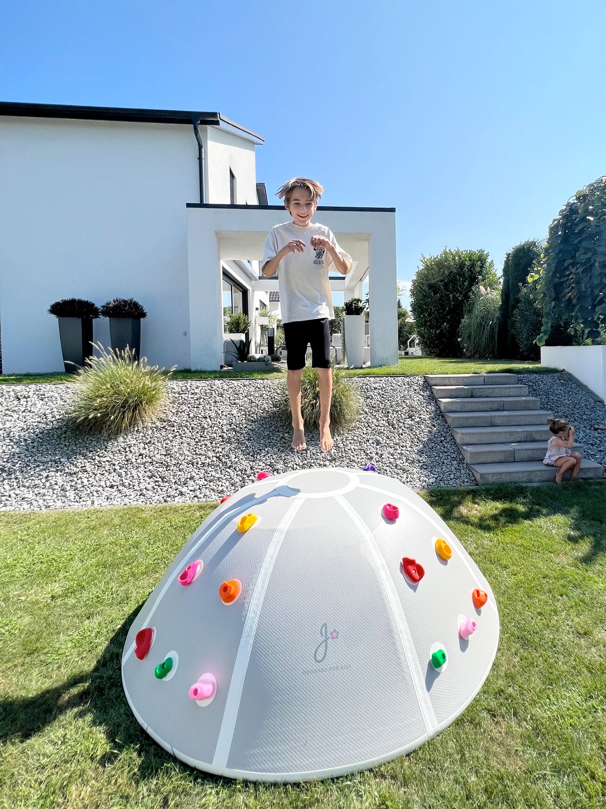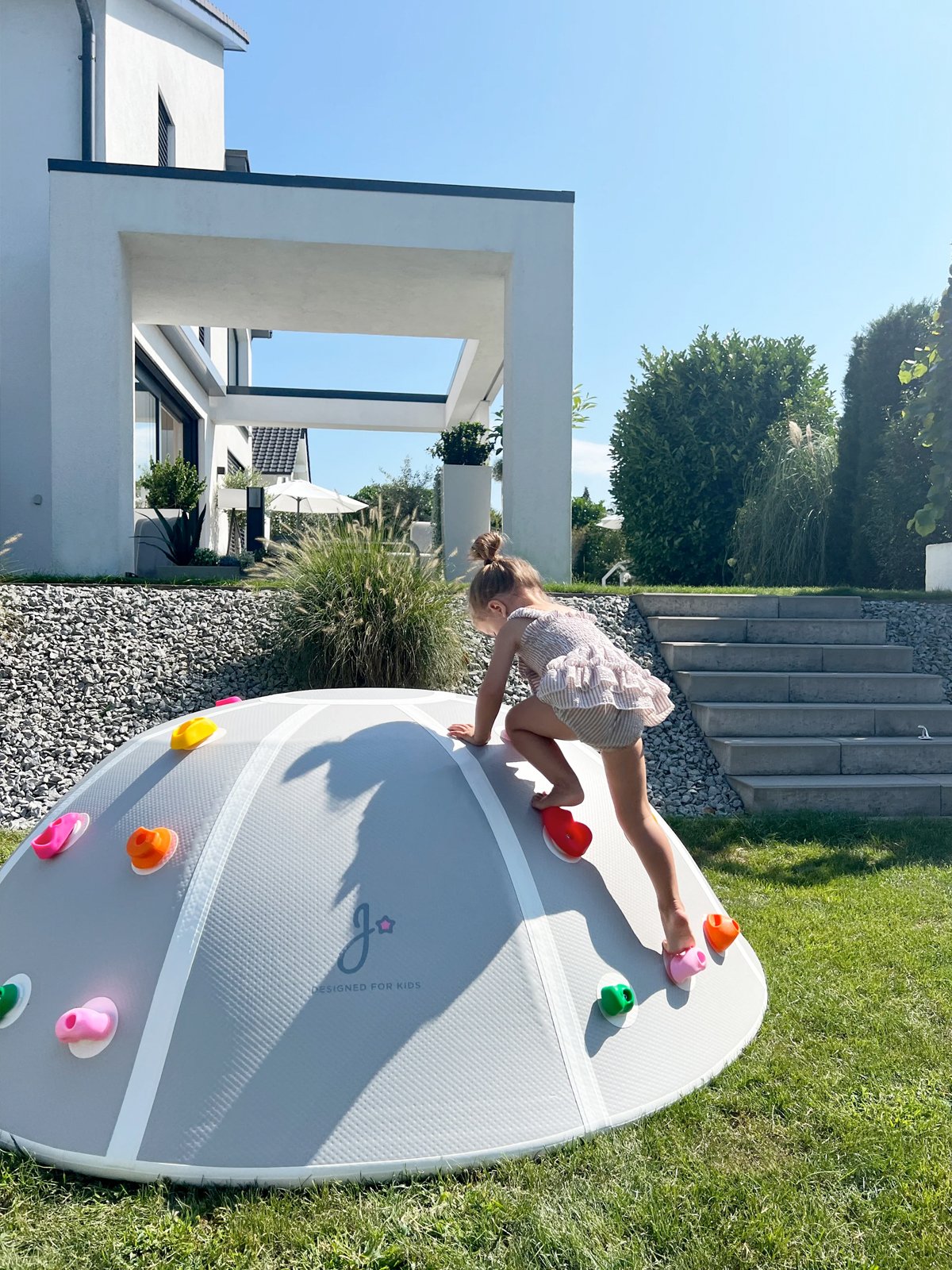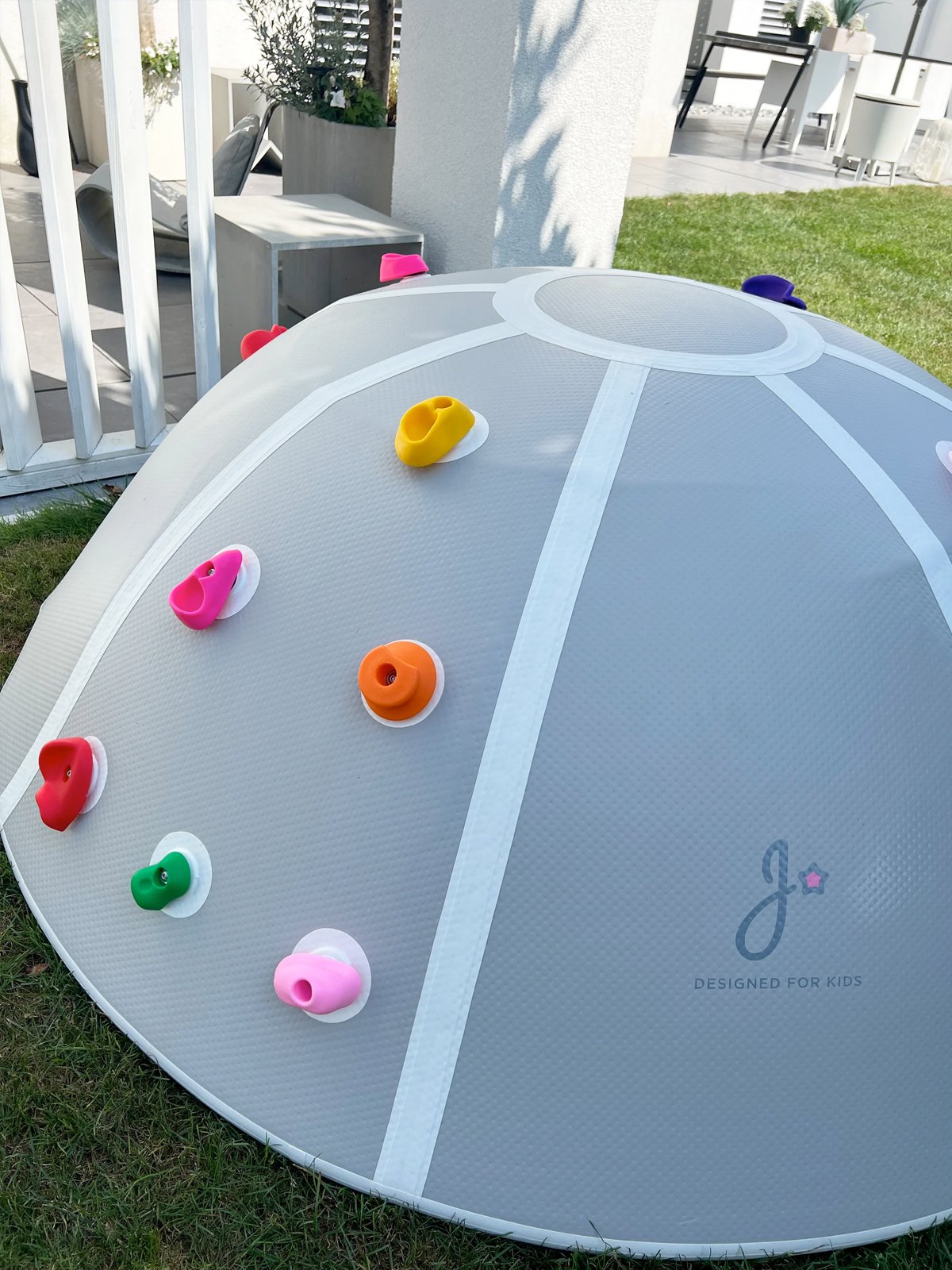 Met zijn royale afmeting van 190 cm in diameter en 70 cm hoog nodigt deze “dome” uit tot eindeloos klimmen, klauteren en springen. Het stevige, weerbestendige materiaal en de zacht afgeronde hoeken zorgen voor veilig speelplezier in de buitenlucht. Perfect voor nieuwsgierige kinderen vanaf 3 jaar die hun energie kwijt willen en al spelend hun motoriek versterken.